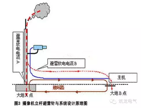 这里的要害问题是:摄像机是安防系统的有机组成部分,与主机和全系统有着紧密的电气连接关系,“摄像机立杆避雷针化”后,避雷针也就“正式”成了安防系统的有机组成部分,避雷针也与主机和全系统有着紧密的电气连接关系。这是安防工程的现实,也是“专业防雷厂家”有意无意回避或忽略的问题。